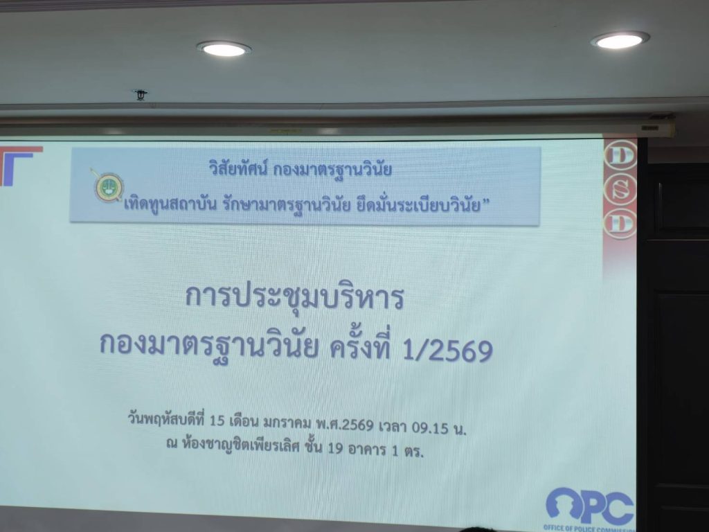 ประชุมบริหาร มน. ครั้งที่ 1/2569 15 มกราคม 2026 โดย admin / ข่าวภารกิจผู้บังคับบัญชา วันพฤหัสบดีที่ 15 มกราคม 2569 เวลา 09.15 น. ณ ห้องชาญชิตเพียรเลิศ ชั้น 19 อาคาร 1 ตร. พล.ต.ต.ณัฐชัย คงบุญ ผบก.มน. เป็นประธานการประชุมบริหาร มน. ครั้งที่ 1/2569